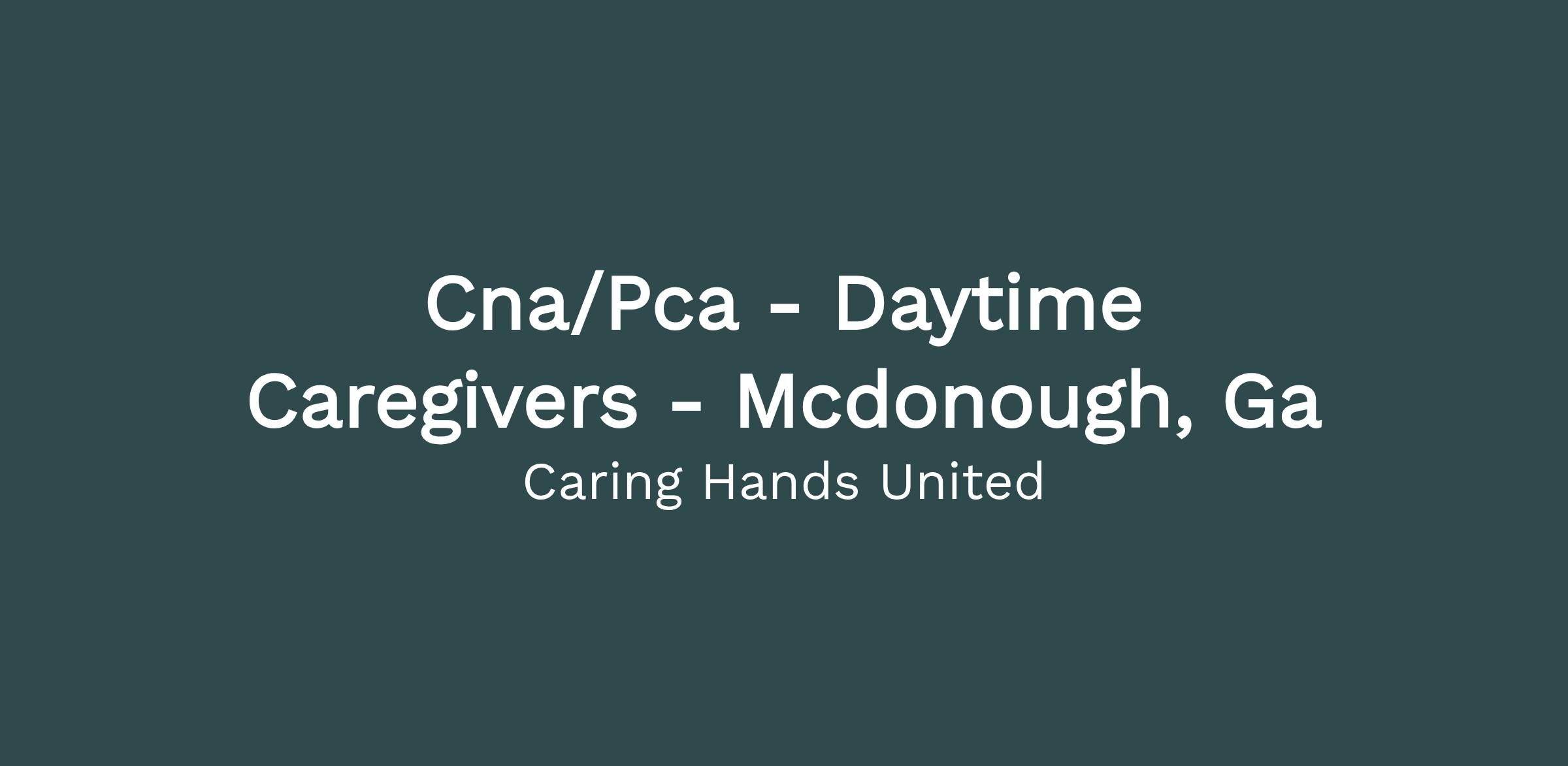 Caring Hands United Inc, is seeking compassionate a Part Time CNA/PCA in the McDonough, GA area to work within our client's homes providing support with daily living tasks and personal care under the supervision of a Registered Nurse and Staffing Coordinator. Must be able to travel to one or more client locations in the community and perform assigned direct care activities, basic personal care procedures, and training for clients in the community. We offer excellent wages, benefit, and flexible scheduling.