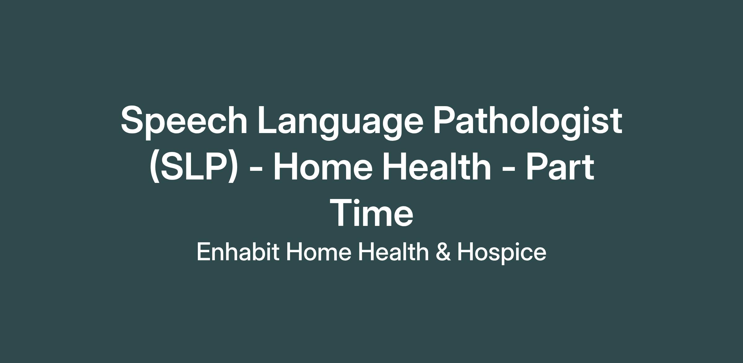Speech Language Pathologist (SLP) - Home Health - Part Time